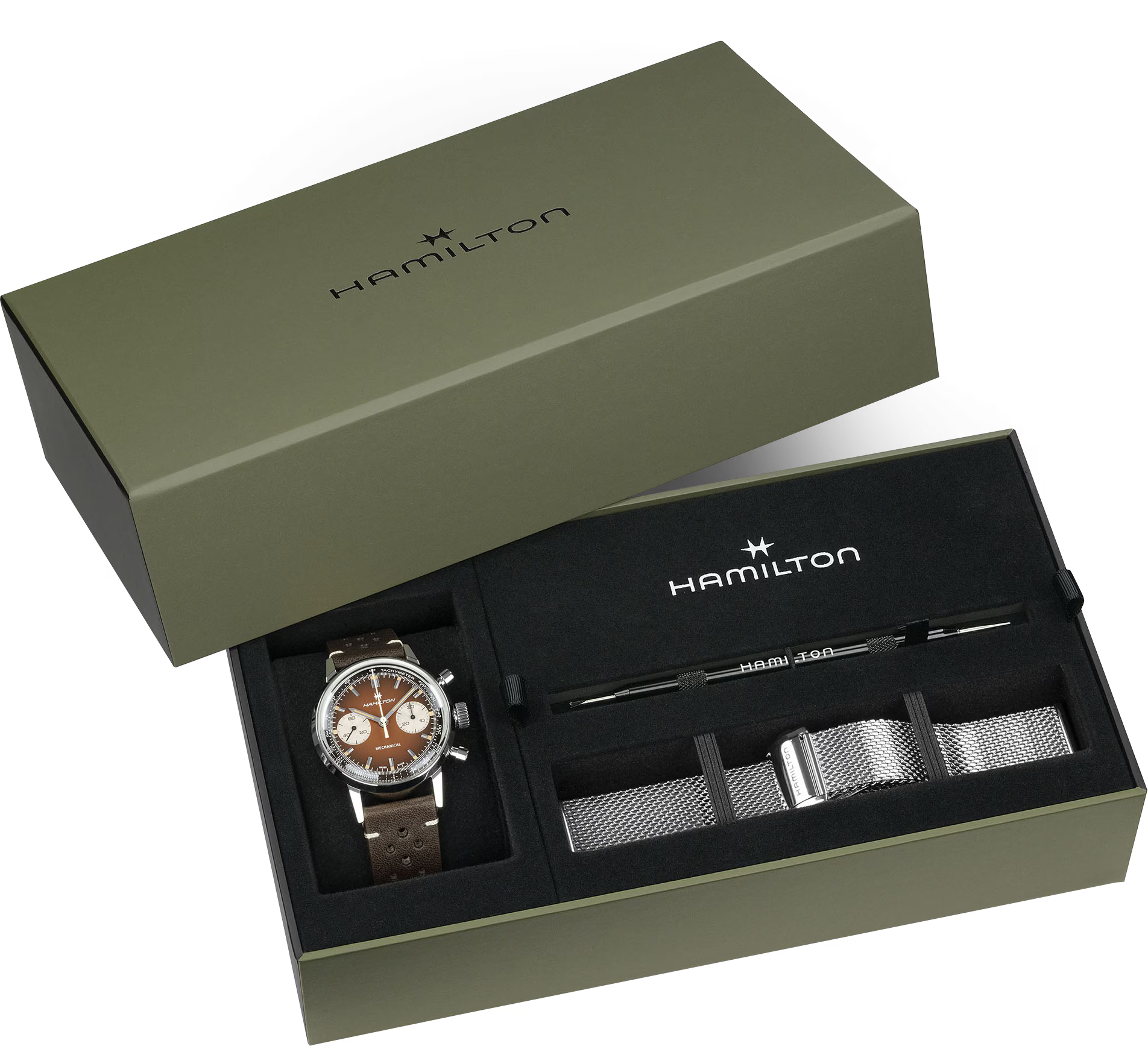Caratterizzato dallo spirito delle corse degli anni ‘70, l’American Classic Chronograph 40 mm in marrone vintage esprime l’intramontabile stile americano. Le sue finiture fumé e i tocchi di colore rétro evocano l’emozione della pista, mentre i cinturini traforati ispirati alle corse automobilistiche completano il look. Corredato da un secondo versatile bracciale in maglia fornito nella confezione, questo cronografo automatico è una dichiarazione audace per chi ama la libertà e la velocità.