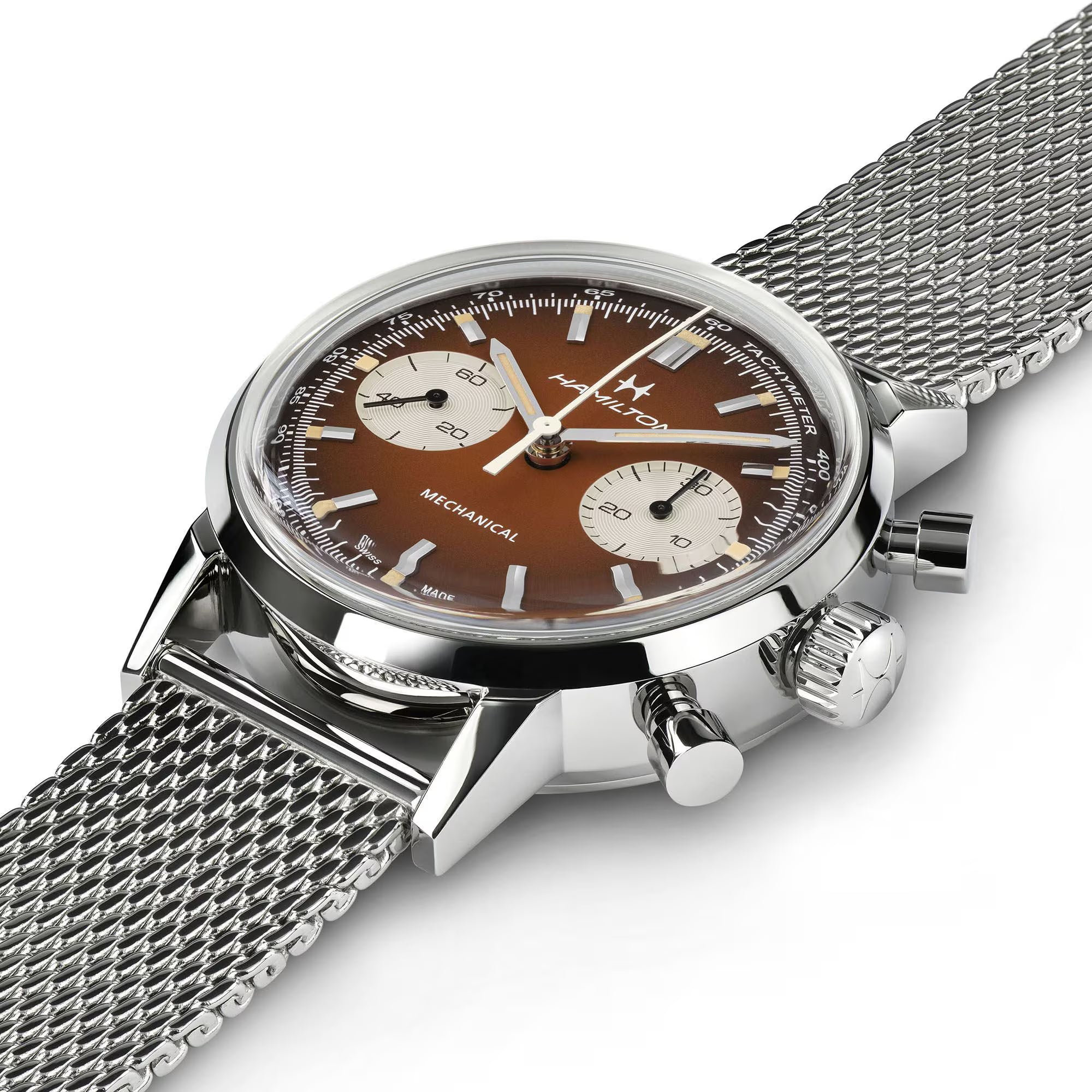 Il movimento cronografo meccanico H-51 celebra i principi fondamentali dell’orologeria. Con una riserva di carica di 60 ore, questo calibro a carica manuale scandisce il tempo con una combinazione di precisione moderna e fascino d’ispirazione vintage.