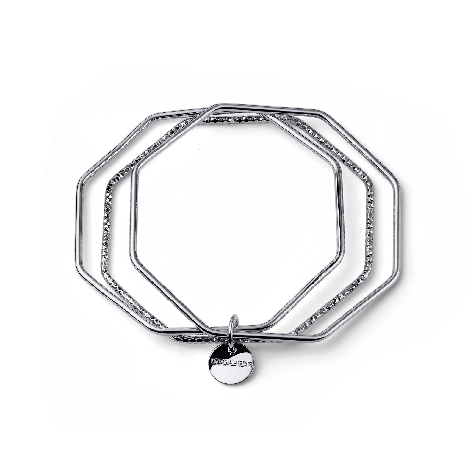 Women's silver 3-bangle bracelet, minimal octagonal design, polished and diamond-cut finish. Length: 20.00 cm. Refined and timeless: this 3-bangle bracelet combines modern design and timeless sophistication. A lightweight piece, perfect for those who love a simple yet sophisticated style. A wonderful gift idea to express your femininity. Let yourself be captivated by a unique piece that expresses who you are; wear it alone or pair it with other bracelets to dazzle.