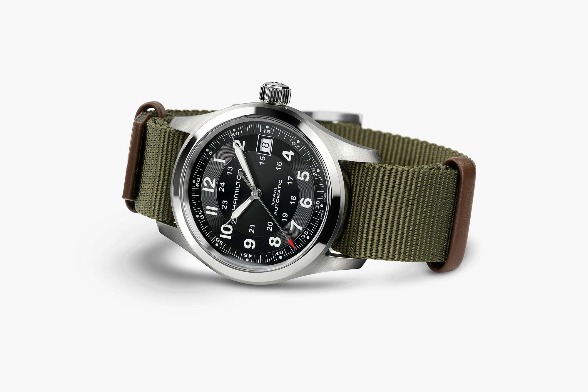 Discover the limited edition Khaki Field Automatic 38 mm, which pushes the boundaries of what’s possible in watchmaking, creativity, and storytelling, in collaboration with “Call of Duty: Black Ops 7.” Worn by Axel Vermaak in the game, this robust Swiss-made timepiece features a stainless steel case, a black dial with multi-textured finishes, and hands coated with Super-LumiNova® for optimal visibility even in low-light conditions. A sturdy khaki green NATO strap enhances its tactical look, while the H-10 automatic movement offers an 80-hour power reserve, ideal for any mission. Limited to just 5,000 pieces , the commemorative edition features a “Call of Duty” inscribed caseback and an exclusive packaging.