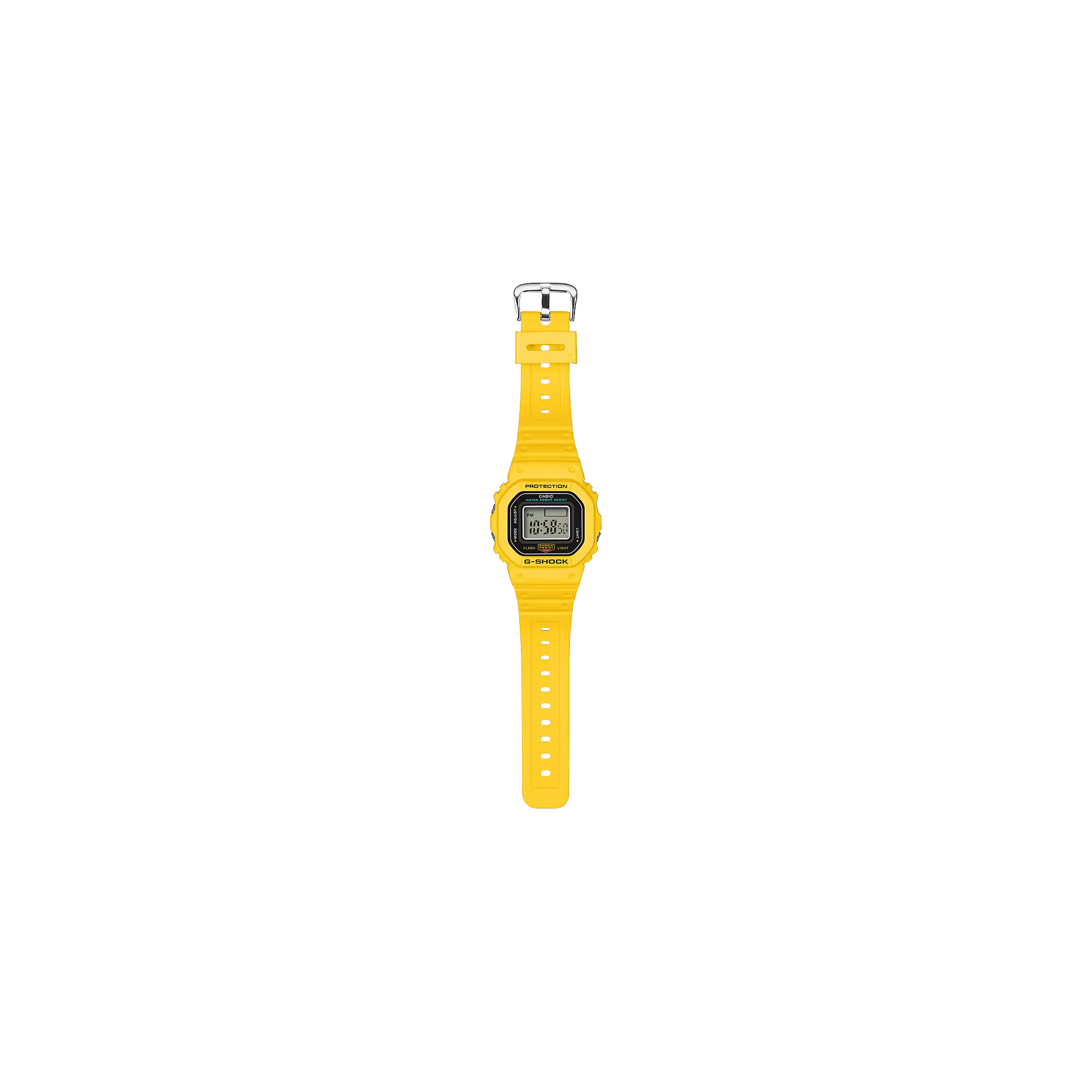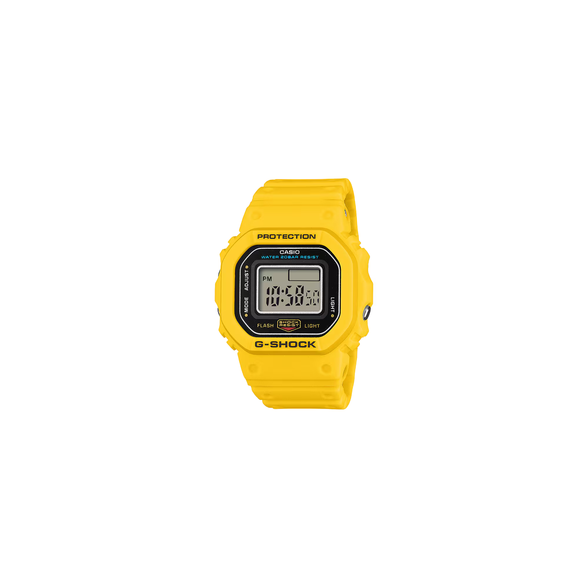 Introducing the first miniature G-SHOCK: a faithful reproduction of the DW-5600 model, suitable for wearing as a ring or as a collector's item. Every detail is meticulously crafted, from the side buttons to the buckle to the LCD, all precisely reproduced using advanced molding techniques. Like every G-SHOCK, this one is shock-resistant and water-resistant to 20 bar. Even in its diminutive size, the LCD display provides all the information you need: hours, minutes, and seconds, as well as a dual time display, stopwatch, and automatic calendar. The case, bezel, and strap are crafted from bio-based resin, a material designed to help reduce environmental impact. Choose your favorite color from three options: black, yellow, or red. Each miniature G-SHOCK comes in special packaging.