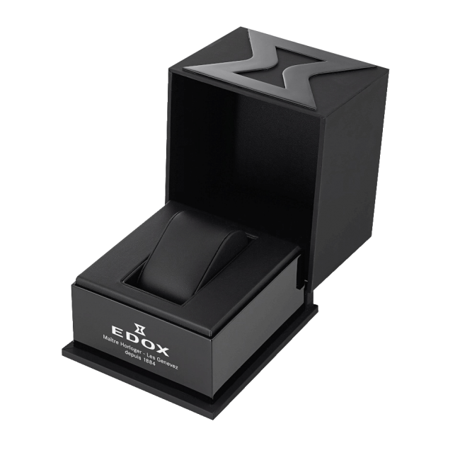 Features: Edox crown and/or pushers with double O'ring, Helium valve, Luminescent hands and/or indexes, Screw-down crown and/or pushers, See-through case back