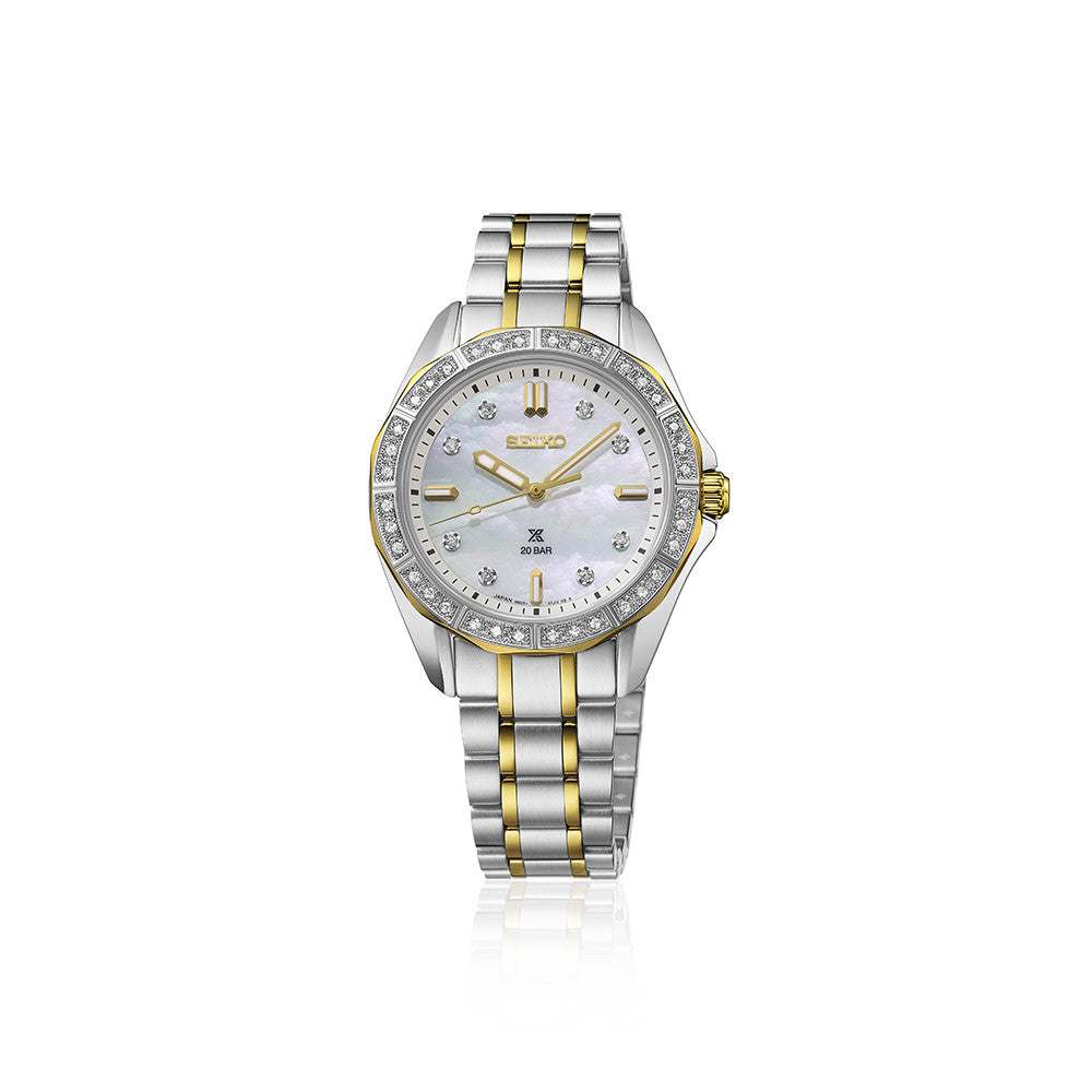 Seiko expands its Prospex women's line, launched earlier this year, with new models that effortlessly combine elegance and sportiness. These watches combine functionality and femininity, perfect for any time of day. With a 34mm case diameter, they fit perfectly on the wrist, appearing discreet yet present. The bezel, featuring a two-layer construction with 12 engraved indexes on the first layer and an elegant decorative polygonal border on the second, gives the watch a unique touch of sophistication. Every detail has been carefully considered to offer refined style without sacrificing practicality.
