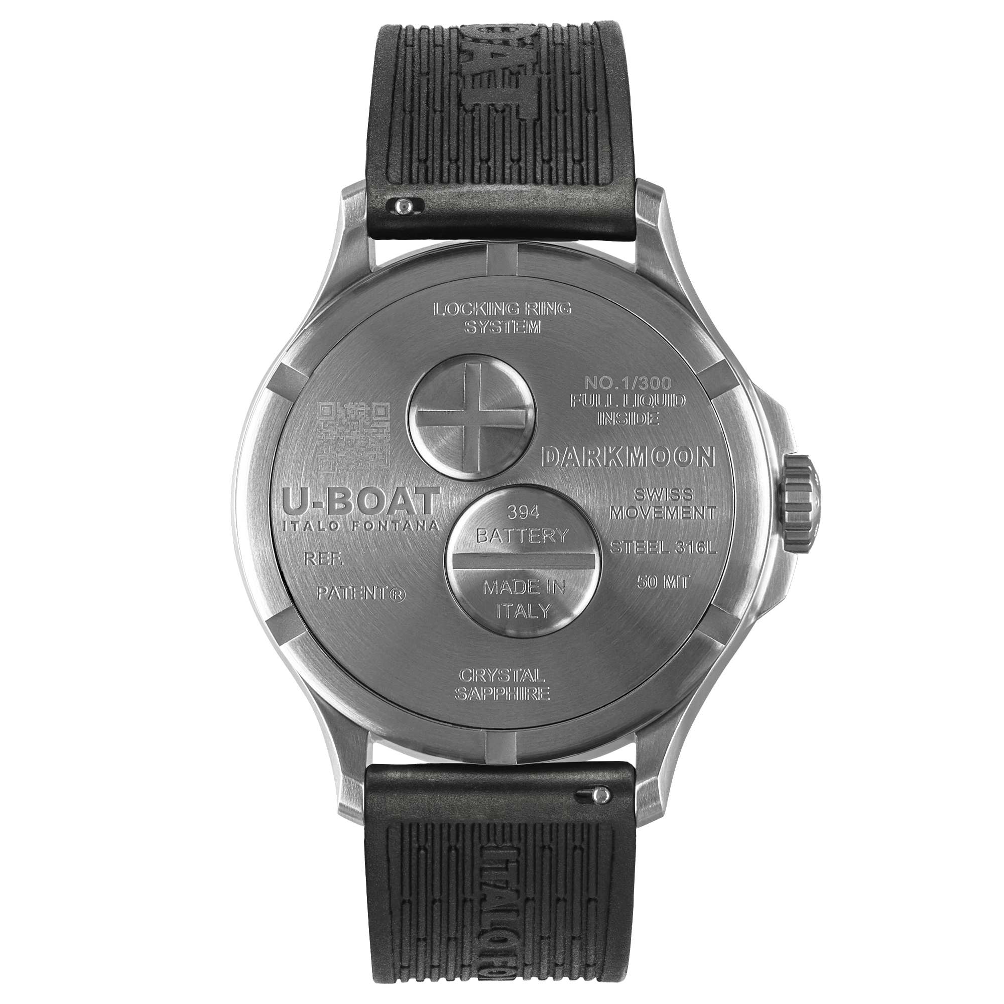 Innovative locking ring system with quick battery replacement. Laser-engraved serial number. QR code for access to an exclusive digital experience.
