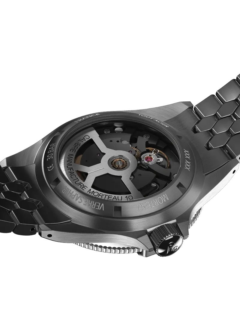 This new Superman features a completely redesigned stainless steel case topped with a sapphire bezel featuring a striking color gradient effect, complemented by a refined gold-tone dial and a slim, tapered scale bracelet. It also features our latest three-hand caliber CMM.10, visible through a transparent sapphire caseback, which delivers chronometric precision and a comfortable 70-hour power reserve. This "Manufactured French" Superman benefits from local production and represents the definitive evolution of this historic model.