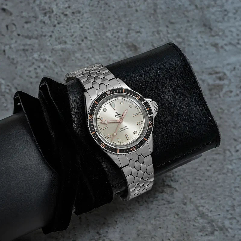 The high-quality double-domed sapphire crystal offers improved readability, greater resistance and a decidedly vintage look.