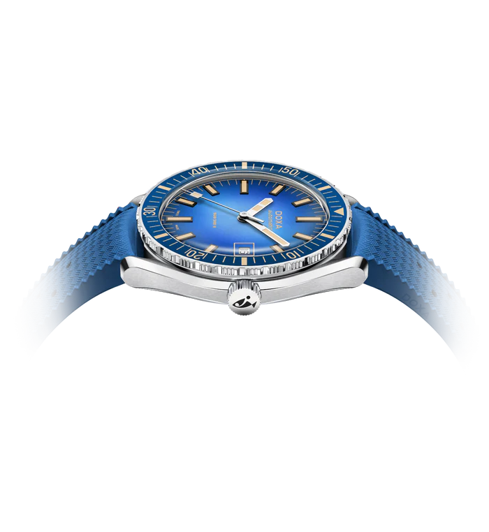 El SUB 200 II marca una evolución decidida del reloj de buceo emblemático de DOXA, introduciendo por primera vez una esfera ahumada en la colección permanente. La superficie degradada se oscurece hacia el borde y se realza con un acabado moiré discreto que crea profundidad y juegos de luz dinámicos, manteniendo al mismo tiempo la claridad y el equilibrio propios del diseño SUB.