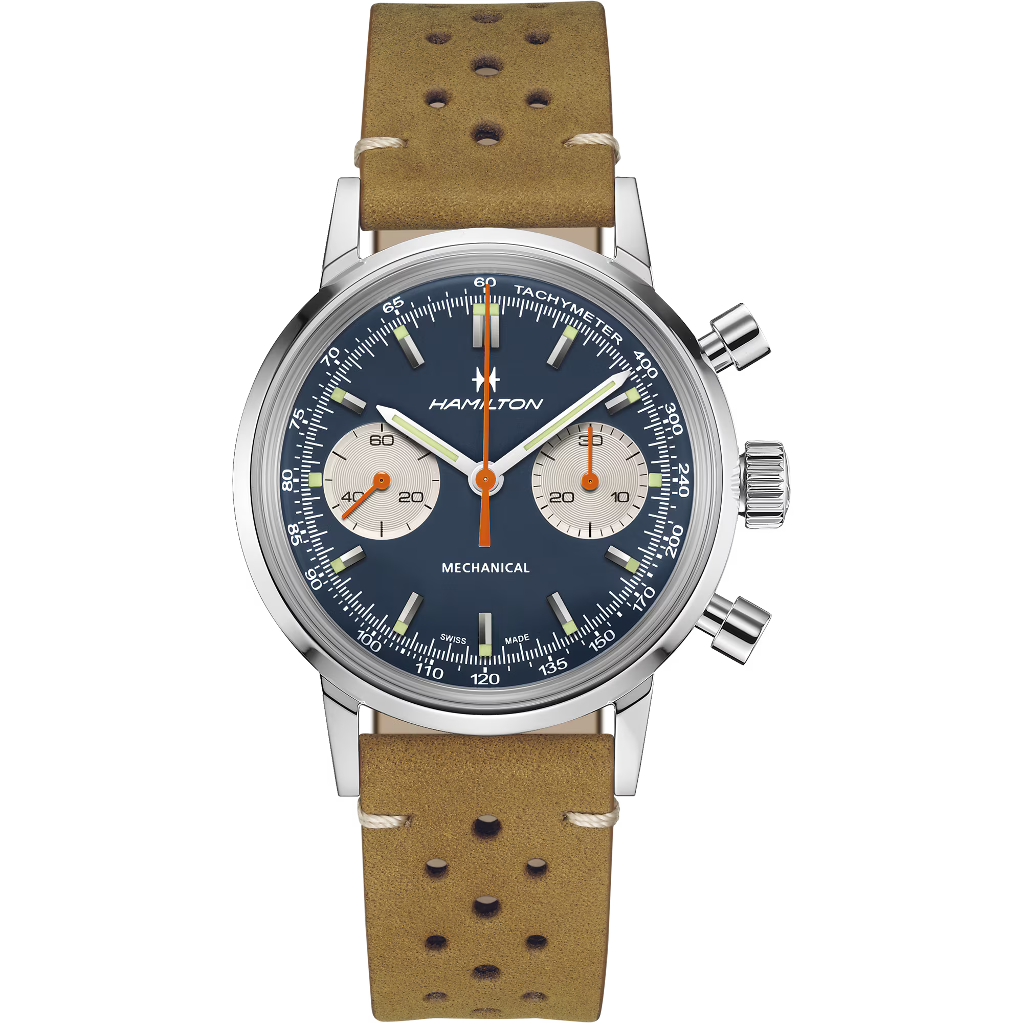 El movimiento cronógrafo mecánico H-51 celebra los principios fundamentales de la relojería. Con una reserva de marcha de 60 horas, este calibre de cuerda manual marca el tiempo con una combinación de precisión moderna y encanto de inspiración antigua.