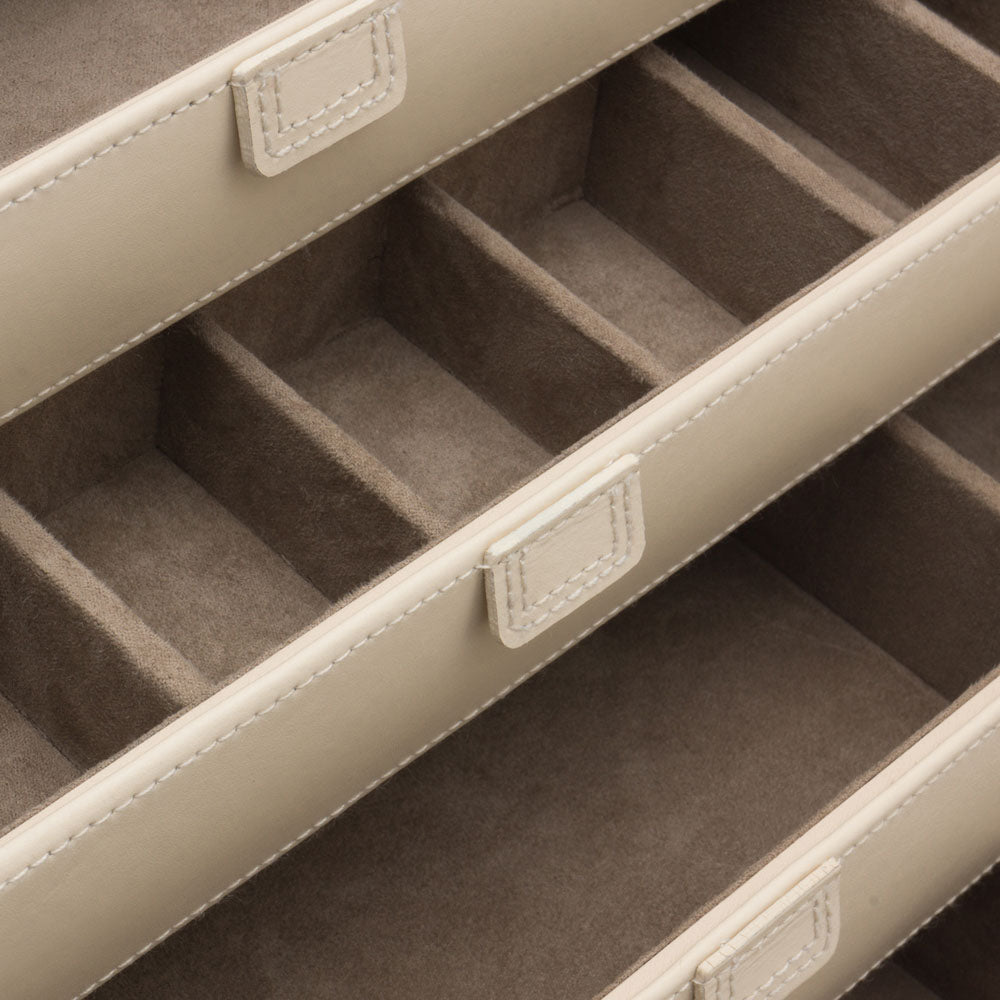 L'incarnazione della sofisticatezza e dello stile. La Caroline Extra Large Jewelry Case, un classico senza tempo con eleganti linee morbide degli anni '50, in morbida pelle trapuntata a diamante e dettagli in oro. Questa raffinata custodia è la casa perfetta per i tuoi preziosi gioielli e cimeli.