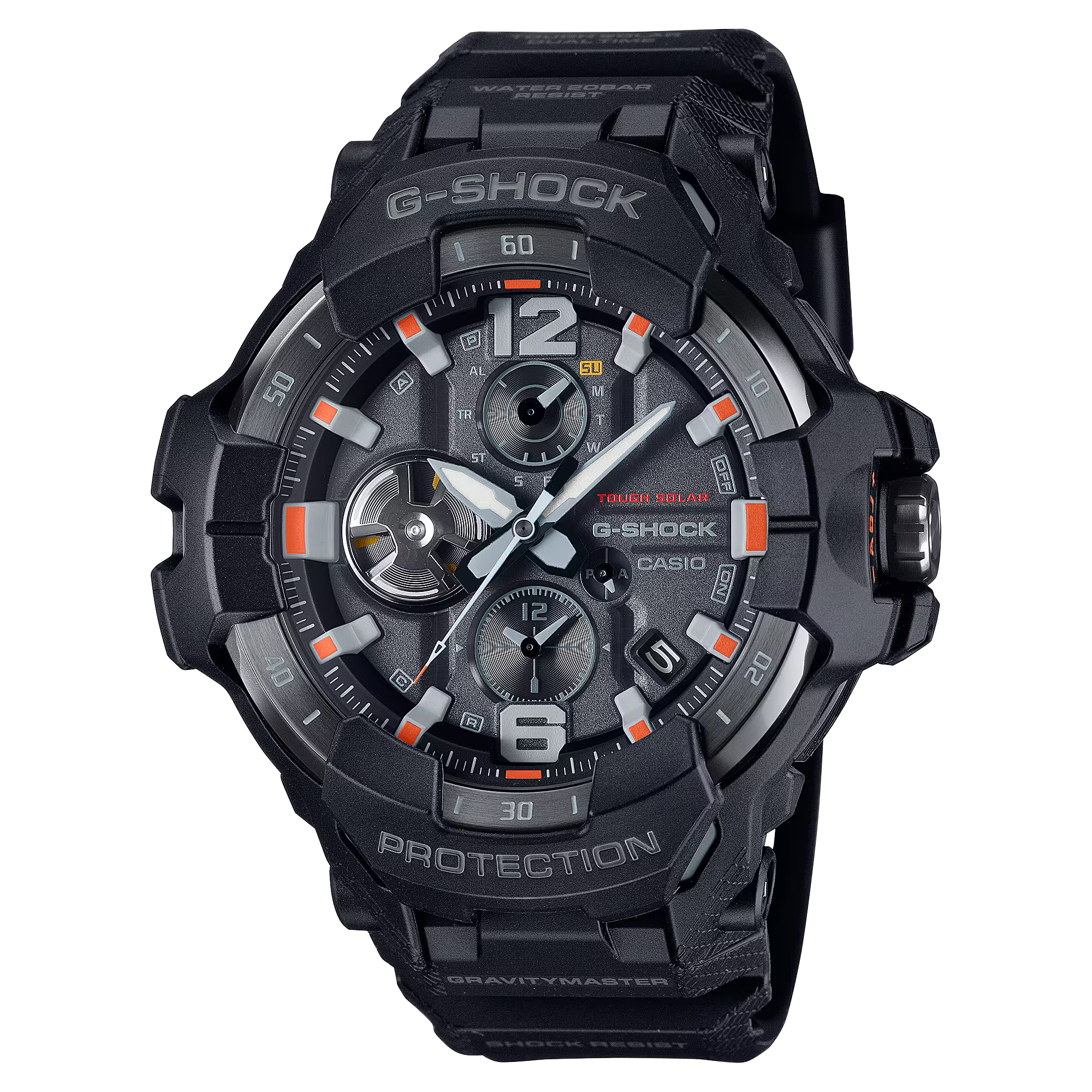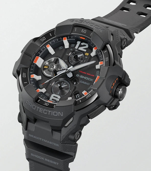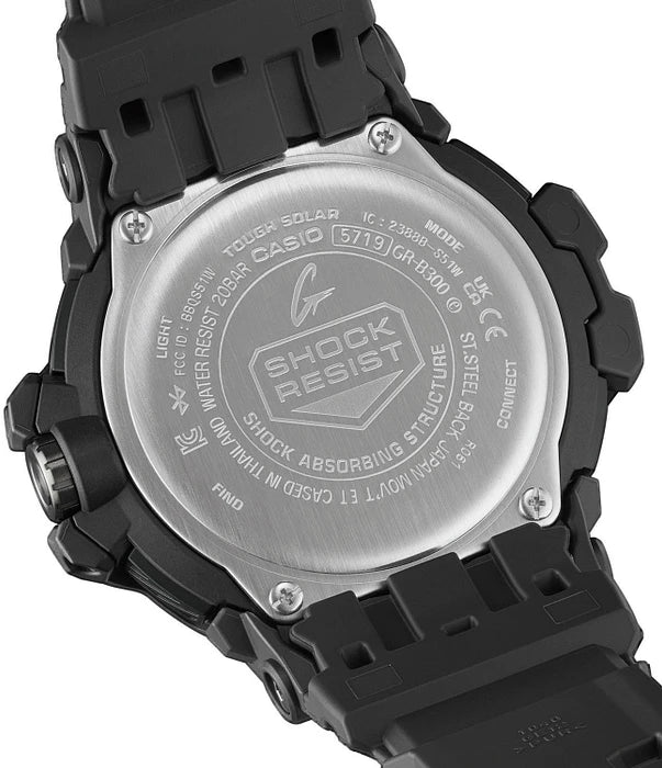 Qualunque cosa si faccia, ovunque ci si trovi, con G-SHOCK Master of G hai le spalle coperte. La forma organica del GRAVITYMASTER GR-B300EC è ispirata agli aerei di nuova generazione e resa attraverso un design uniforme La struttura Carbon Core Guard e l'ampia superficie 3D garantiscono durata, leggibilità e vestibilità confortevole. Si può inoltre usufruire di tutte le funzioni pratiche, tra cui la doppia visualizzazione simultanea dell'ora in due città, una funzione di memoria del registro dei voli per registrare i percorsi effettuati e molto altro ancora.