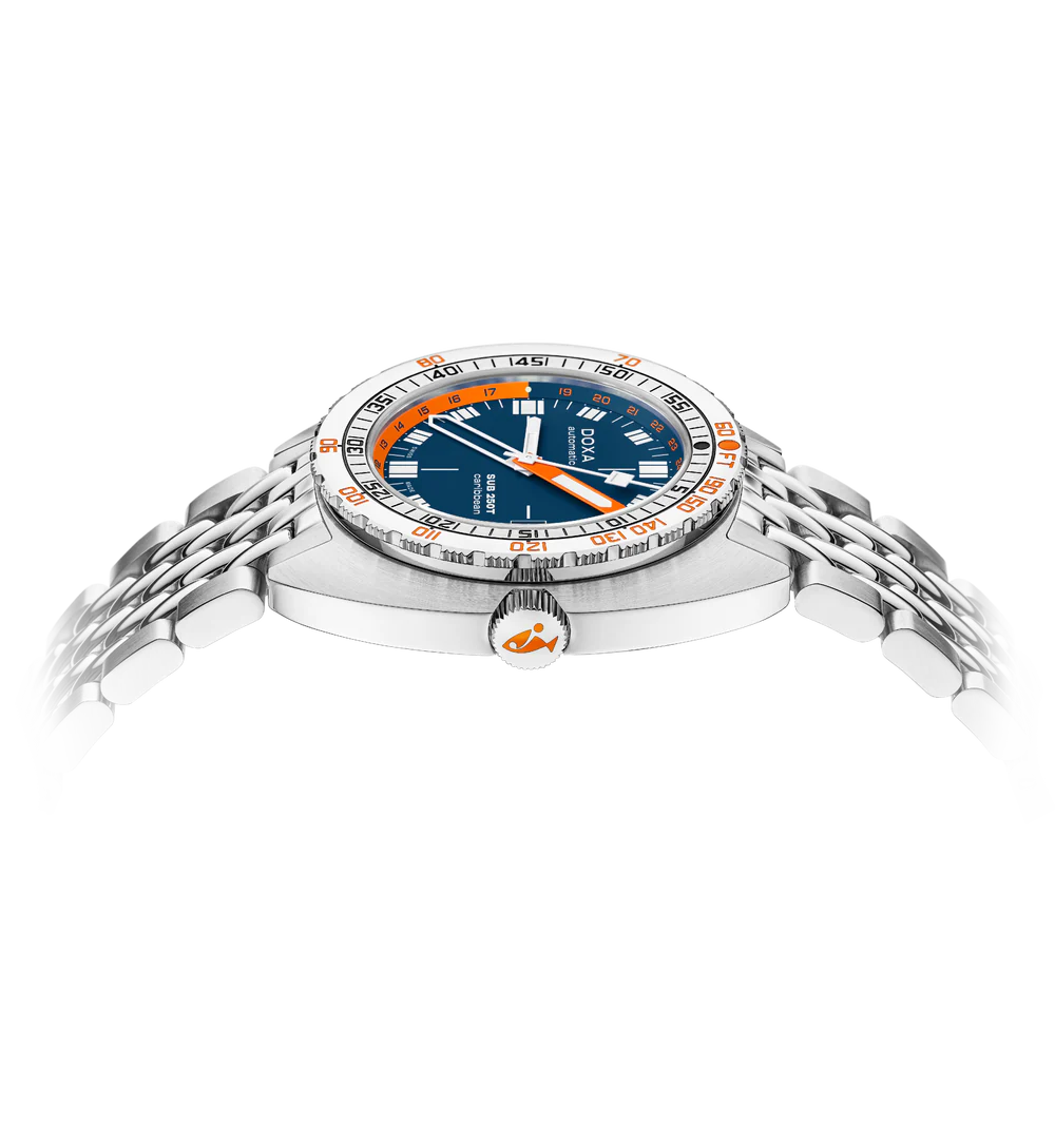 Il SUB 250T GMT segna il ritorno di DOXA alla funzione GMT, unendo la robustezza di un orologio subacqueo alla funzionalità per la lettura dei fusi orari. La cassa in acciaio da 40 mm offre il giusto equilibrio tra presenza al polso e comfort, mentre la corona a vite e la lunetta unidirezionale con scala per immersioni garantiscono prestazioni di livello professionale. Con una resistenza all’acqua di 250 metri (820 piedi), è progettato tanto per l’esplorazione subacquea quanto per i viaggi in giro per il mondo.