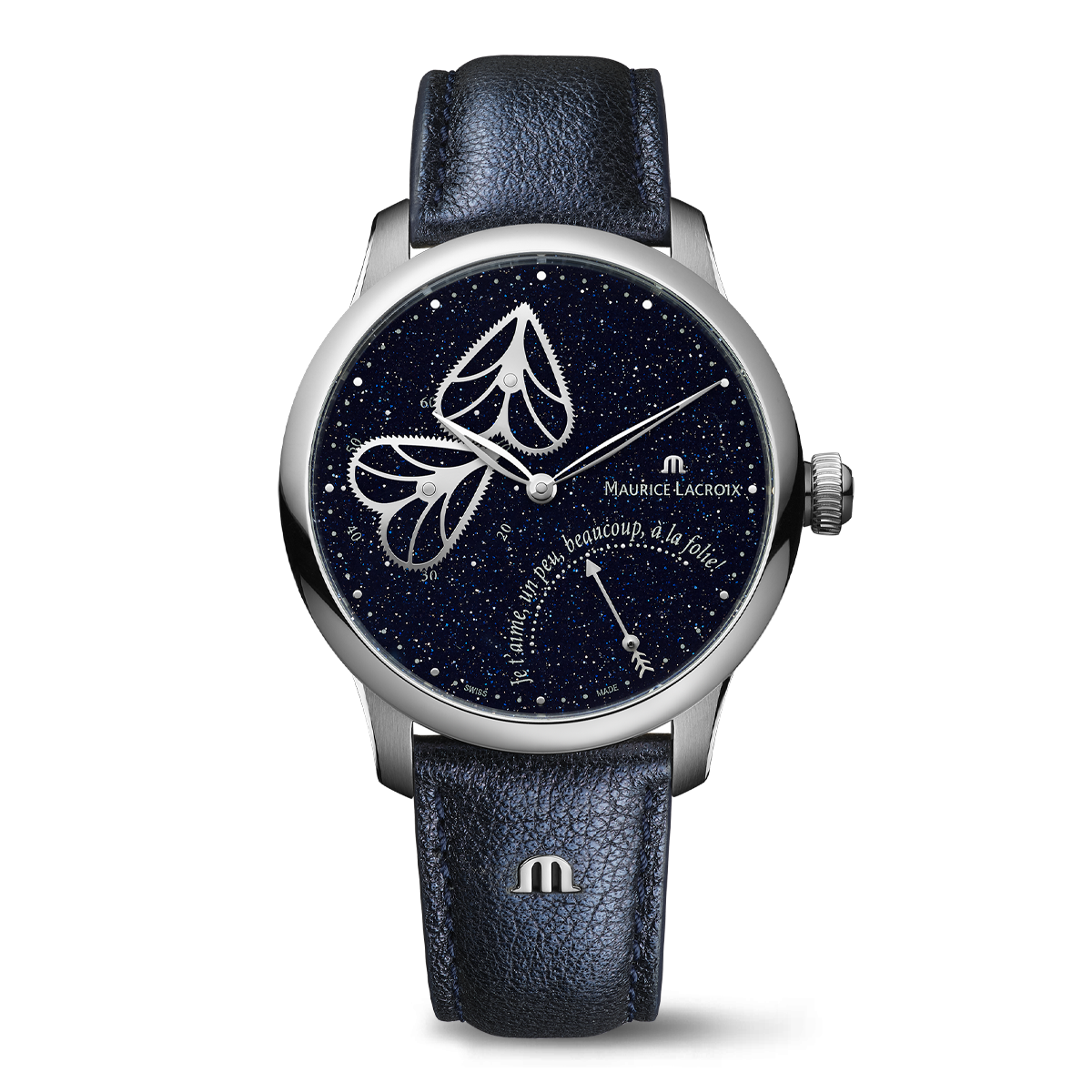 - BRACCIALE/CINTURINO: Blu scuro, cinturino in pelle di vitello, reca il logo "m" di Maurice Lacroix